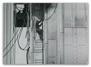 در ژانویه 1933 پروژه طویل ترین پل دنیا ، بلند ترین برج ساخته شده و عمیق ترین فونداسیون در یکی از بدترین شرایط آب و هوایی آغاز شد.در ساخت این پل کابلی 80.000 مایل کابل استفاده شده است.