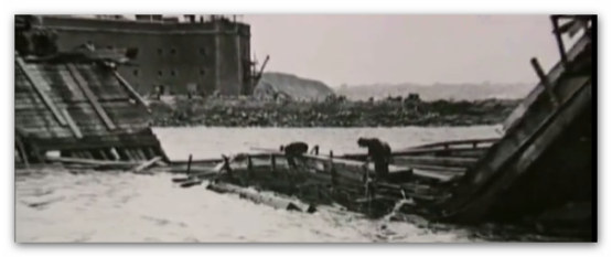 یک اسکله دیگر در 14 دسامبر ساخته شد اما آن را نیز طوفانی شدید تر ویران کرد. 5 ماه بعد مجدد اسکله دیگری ساخته شد به قدری محکم و مقاوم که معتقد بودند هیچ چیز توان تخریب آن را ندارد.